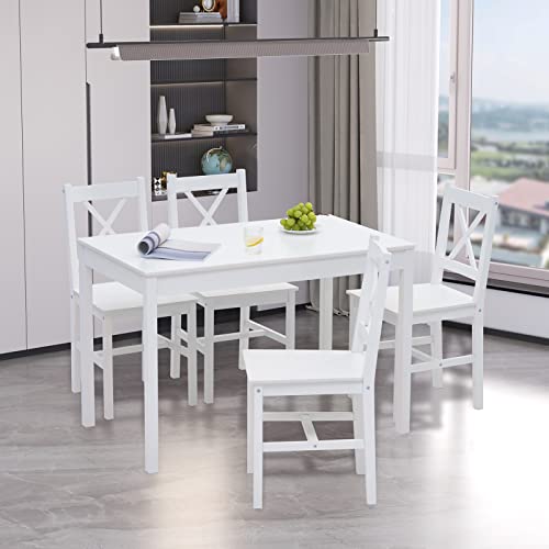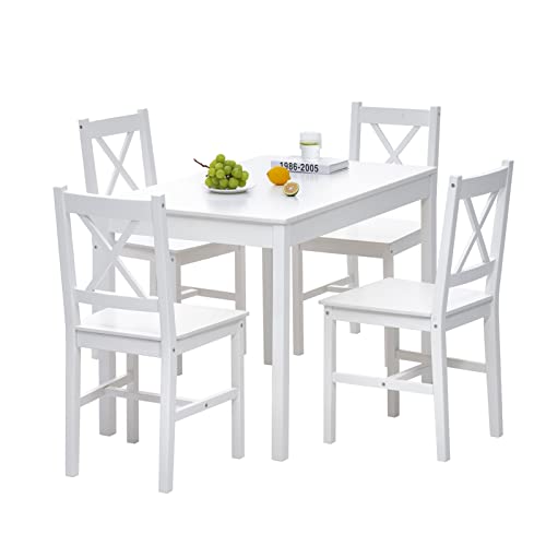 Tavolo e sedie cucina 100% di legno di pino eccellente; usale per lunga vita, La superficie del tavolo e delle sedie sono lucidate e verniciate, rendendo la superficie più liscia, impermeabile e resistente alla corrosione, facile da pulire