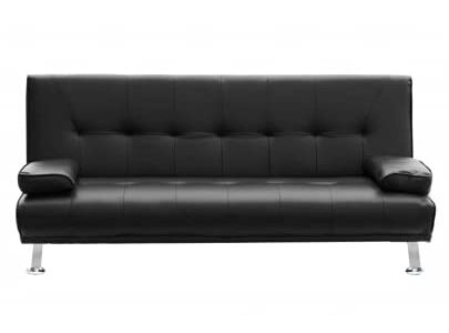 arredo Divano letto Drome JS1095 reclinabile ecopelle 3 posti – casa – ufficio – doppio con cuscini e piedi in metallo (Ecopelle, Nero)