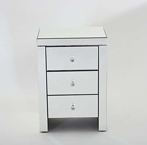Caratteristiche strutturali: comodino con 3 cassetti a specchio. Pannelli in vetro specchiato con bordo smussato. Tutto specchiato e visivamente accattivante. Pomelli per cassetti in stile cristallo acrilico. Questo bellissimo comodino a specchio sarà il punto focale in qualsiasi camera da letto.