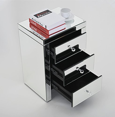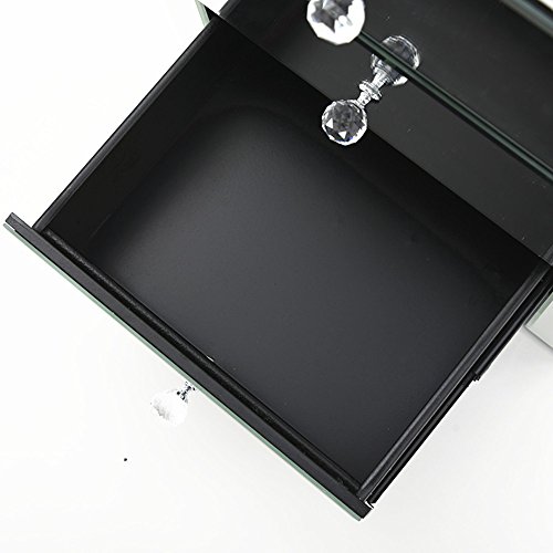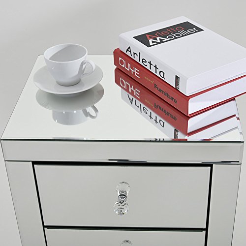 Materiale e dimensioni: realizzato in materiale di alta qualità, robusto telaio in MDF, superficie in vetro a specchio con manici in cristallo di vetro. 60 cm di altezza x 30 cm di larghezza x 30 cm di profondità.