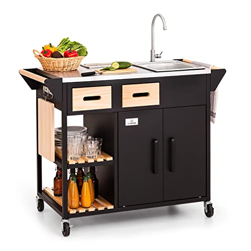 PORTA FUORI LA TUA CUCINA: Porta in giardino il nostro carrello cucina che ti consente di preparare, pulire e conservare gli alimenti in un’unica unità mobile. Dotato di tagliere, cestino della spazzatura, lavello e secchiello per il ghiaccio.