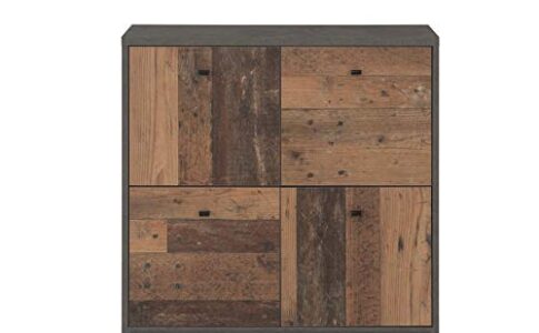 Forte Cassettiera a 4 Ante in Combinazione di Colori alla Moda in Legno Vintage Combinato con Effetto Cemento, Materiale a Base, 77,2 cm x 77,5 cm x 29,6 cm