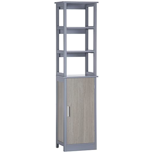 PRATICO: La combinazione di 3 ripiani aperti e un armadietto con mensola interna ti permette di organizzare i tuoi prodotti comodamente all’interno di questa piccola colonna bagno.