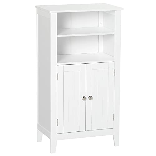 SPAZIOSO: Dotato di 2 vani aperti e un armadietto con 2 ante, il mobiletto multiuso offre tanto spazio per riporre i tuoi prodotti da bagno e, grazie al design rialzato, ti permette di pulire facilmente il pavimento.