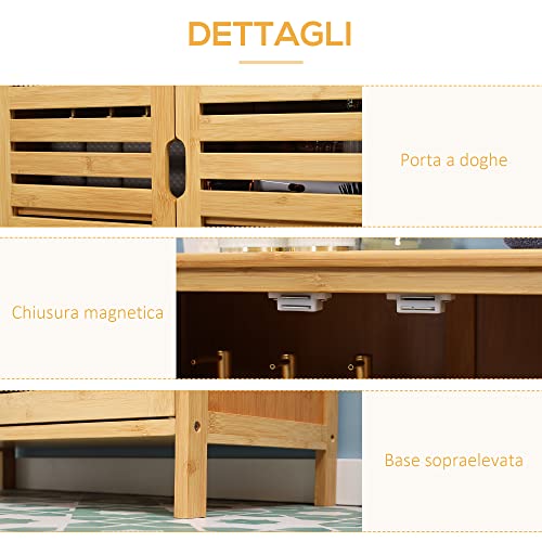COSTRUZIONE IN BAMBÙ: Questo funzionale mobile salvaspazio è realizzato in resistente bambù naturale, che conferisce un aspetto naturale ed è adatto ad un uso quotidiano. Le ante e i ripiani a doghe non solo consentono di evitare i cattivi odori all’interno, ma conferiscono anche al mobile da bagno un aspetto elegante.