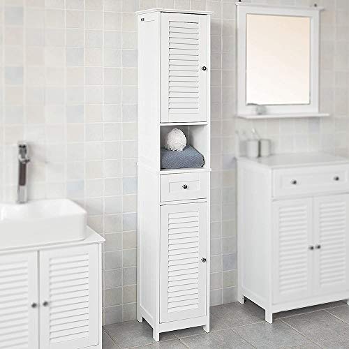 ♡ 【BUONE NOTIZIE PER PICCOLI PEZZI】 Mancanza di spazio di archiviazione nel tuo piccolo bagno? Questo mobile alto viene in soccorso! Stretto e compatto, offre spazio sufficiente per tutti gli elementi essenziali del bagno occupando poco spazio sul pavimento.