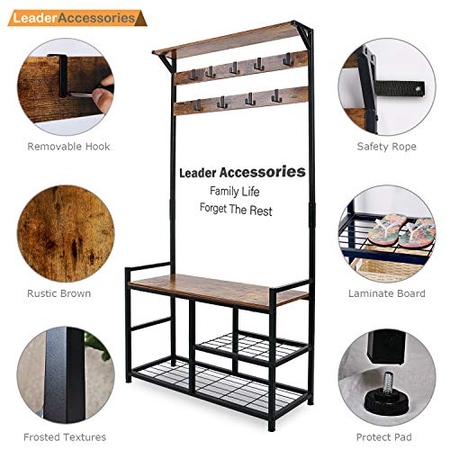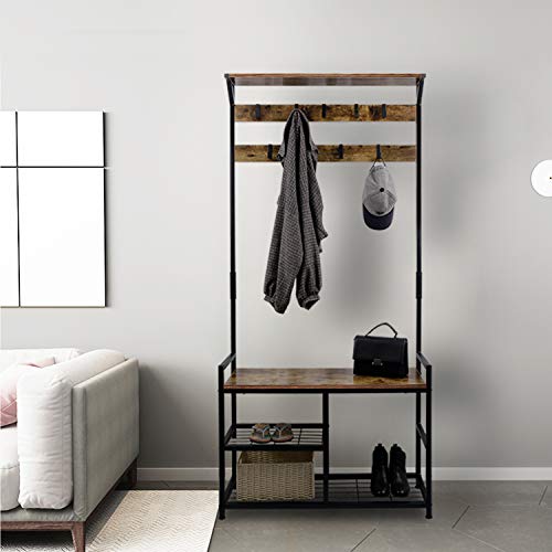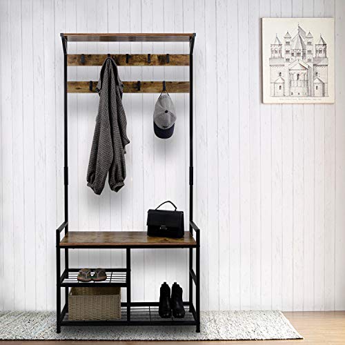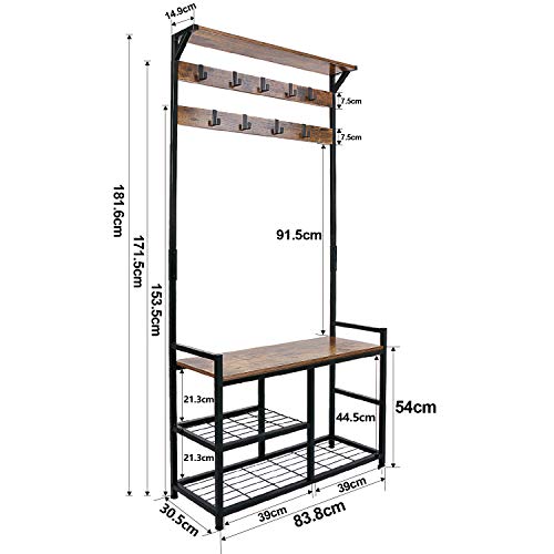 Versatile e Pratico: Stand appendiabiti con 9 Ganci regolabile alla traversa per appendere gli abiti, la portata massima del gancio è 5 kg, adatto per borse, asciugamani, cinture, ecc; 3 ripiani al sotto come scarpiera per riporre scarpe o le scatole di organizzazione, anche può riporre stivali lunghi.