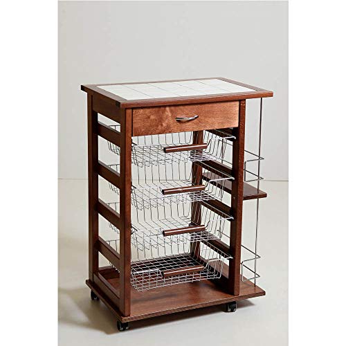 Carrello da cucina realizzato interamente in faggio. Il piano del carrello è con mattonelle in ceramica.