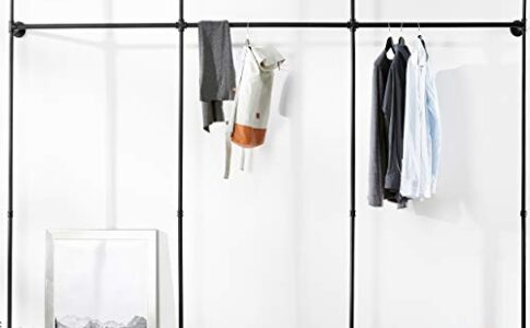 pamo Tubo Appendiabiti Industrial Loft Design – Guardaroba per Cabina Armadio Parete I Appendiabiti per Camera da Letto con Tubi Neri stabili per Montaggio a Parete I Tubazioni