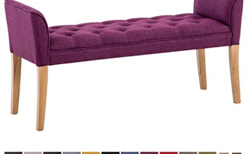 Chaise Longue Cleopatra in Tessuto Chesterfield Imbottita I Panca Fondo Letto Panchina Interno Gambe in Legno 130×40 CM, H 65 CM, Colore:Viola, Colore della Cornice:Antico Chiaro