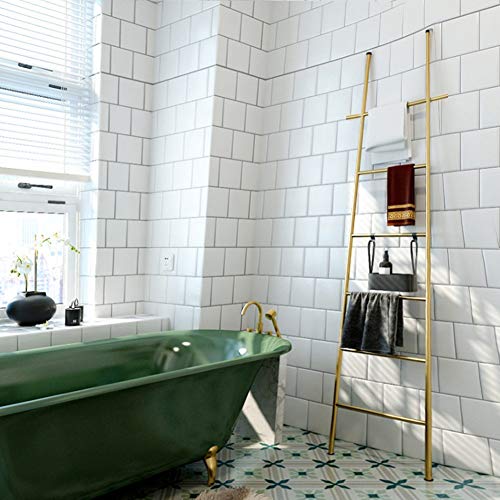 ☛ Rack appendiabiti per scala – MISURA PERFETTA: il manicotto in gomma per fissare la parte superiore del rack alla parete per un buon attrito e stabilità. Se vuoi uno scaffale per asciugamani non troppo grande e sicuramente non troppo piccolo, questa scala per asciugamani da 5,5 piedi è esattamente quello che stai cercando.