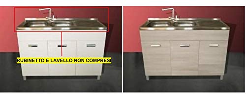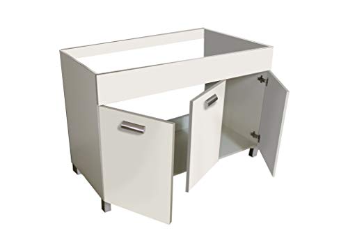 Sottolavello L 120 cm x P 50 cm x H 85 cm, 3 ante, in materiale IDROFUGO a norma DN W100 per resistere all’umidità e all’acqua, Accessori: Cerniere in metallo dotate di sistema di montaggio “FAST”, maniglie in ABS cromato lucido con interasse 96 mm, piedini H 100 mm in pvc verniciati alluminio, viteria varia