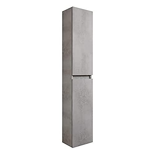 MOBILE SOSPESO IN LEGNO A COLONNA PER BAGNO GRIGIO CEMENTO, collezione ATENA, dotato di due ante con apertura a destra, chiusura ammortizzata e ripiani interni regolabili in altezza in vetro.