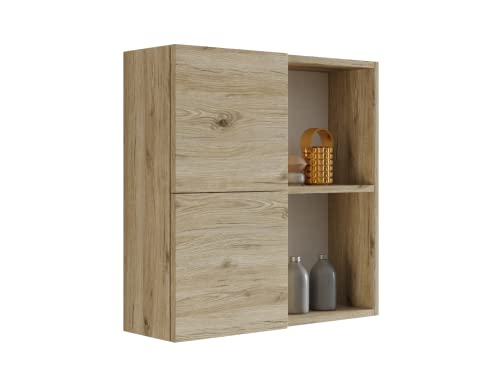 PENSILE DOPPIO in Legno con 2 Ante e 2 Vani a giorno Quercia Naturale realizzato con materiali selezionati di prima scelta. Le dimensioni sono L. 71 cm X P. 22 cm X H. 71 cm