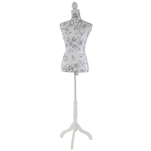 Manichino Sartoriale Busto Donna T222 Fibre di Vetro con treppiede Bianco con Fiori