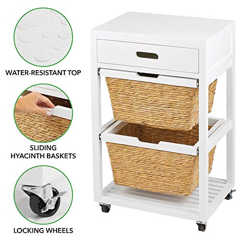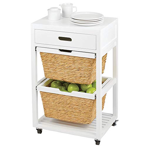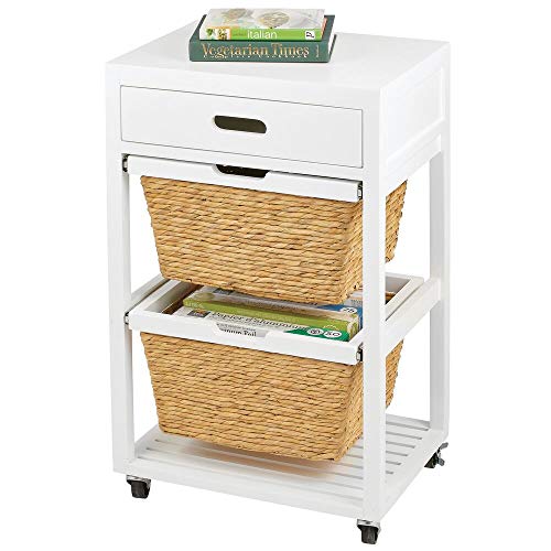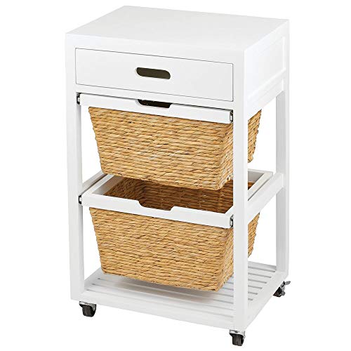 SOLUZIONE SALVASPAZIO: Il carrello tavolino offre un ripiano resistente all’acqua, un cassetto e due cestelli estraibili. Ottimale per ogni necessità della casa.