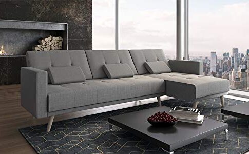 Comfort Home-Innovation – Divano convertibile ad angolo Verona, 267 cm, convertibile in letto, reversibile, grigio chiaro