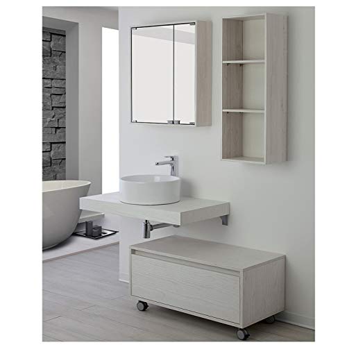 Mensola Bagno Lavabo Con Ciotola 90 Cm Effetto Legno Pino Bianco