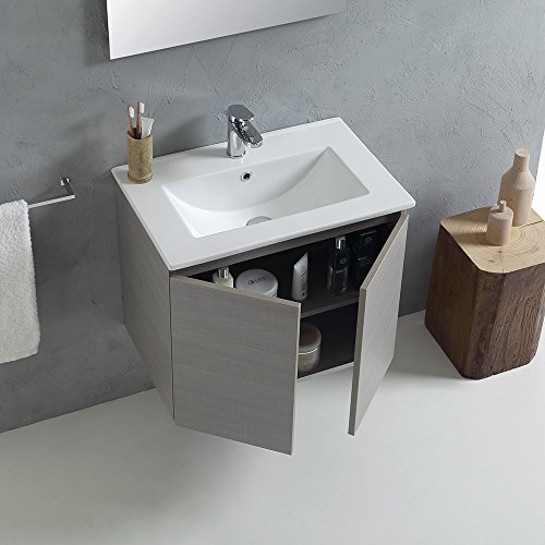 MOBILE COMPLETO 60 CM GRIGIO SOSPESO L’elegante e classico mobile bagno Vinci, facente parte della categoria di mobili per bagno sospesi, con lavabo in ottima ceramica e con dimensioni ridotte, ovvero 60 cm, è in finitura grigio. La linea semplice e pulita di questa nuova serie di arredo è adatta soprattutto per il bagno di servizio o per il locale lavanderia dove gli spazi non sono mai sufficienti. Infatti la dimensioni con le quali viene pensato è adatta ai piccoli spazi, mentre la gradaz