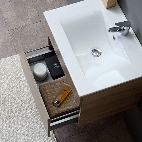 MOBILE MODERNO PER BAGNO DA 60 CM FINITURA ROVERE La nuova composizione sospesa moderna Sole vi stupirà per le sue linee semplici e raffinate e per la praticità di utilizzo!I tecnici progettatori di Kiamami Valentina, infatti, hanno voluto dotare questo mobile bagno sospeso da 60 cm di un comodissimo cassettone con sponde alte, che lo rendono particolarmente capiente e spazioso. Il cassetto è inoltre dotato di chiusura ammortizzata soft close, per aumentare ulteriormente il comfort di utili