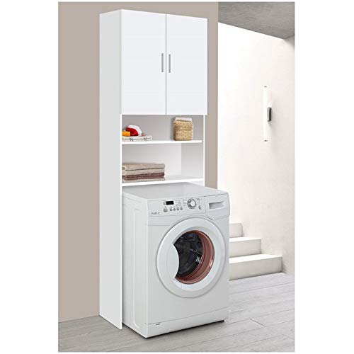 Mobile Coprilavatrice Salvaspazio Bianco In Legno 2 Ante Con Ripiano Interno