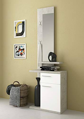 E’ dotato di un pratico cassetto con maniglia in metallo, 1 vano con anta ed una mensola con specchio