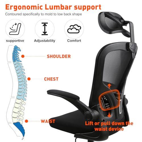 Sedia da ufficio ergonomica: lo schienale a forma di S e il poggiatesta girevole (11 cm, girevole a 120°) della sedia da scrivania offrono un eccellente supporto per lombo e collo. Il design allargato dello schienale si adatta completamente alla schiena e sostiene saldamente le vertebre delle spalle. L’uso della sedia girevole previene efficacemente il mal di schiena mantenendo la naturale curvatura della colonna vertebrale e correggendo la postura seduta.