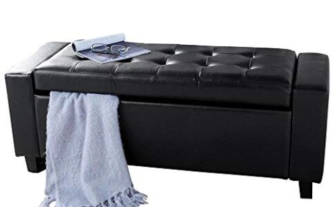 BAKAJI Cassapanca Pouf Contenitore Poggiapiedi per Camera da Letto Panca Sgabello con Struttura in Legno Rivestimento in Eco Pelle Seduta Apribile Imbottita Dimensioni: 110 x 40 x 40 cm (Nero)