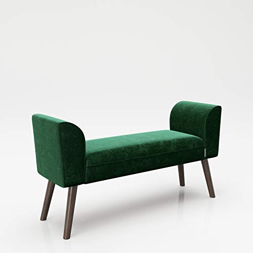 Panca in velluto retrò, design verde, essenza, abete. Seduta morbida imbottita con braccioli e piccoli Stabile piedi in legno massiccio.
