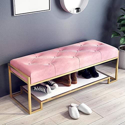 Materiale In Velluto Ultra Morbido:La Seduta Di Questa Panca Per La Casa Alla Moda In Velluto Rosa è Realizzata In Materiale Di Velluto Di Alta Qualità,Alta Flessibilità Nessun Spargimento O Pilling,Abbastanza Morbido Da Sedersi,Insieme Alle Grandi Dimensioni E Al Design Ergonomico Lo Rende Un Luogo Ideale Per Cambiare Scarpe o semplicemente riposati.