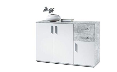 AVANTI TRENDSTORE – Bea – Comò e cassettiere, in legno laminato e bianco, disponibile in 2 diversi colori e 3 diverse dimensioni (Grigio-Bianco, 120x82x35 cm)