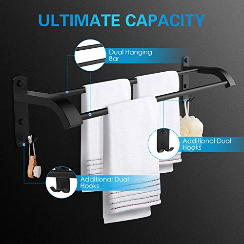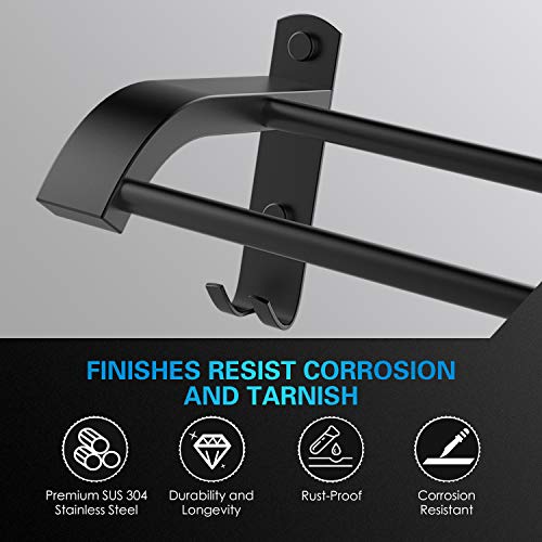 Dimensioni pratiche e pratiche: ottimizza e massimizza il tuo spazio fornendo spazio funzionale e scaffalature per tutte le tue necessità è un gioco da ragazzi con questo porta asciugamani per casa, hotel, sopra la porta o la cucina. Questo portasciugamani nero non è considerato solo come sostanziale scaffale per contenere asciugamani puliti e asciugamani bagnati sul fondo, ma anche adatto per asciugamani e panni di lavaggio. tocco decorativo per il vostro bagno. con questo utile salva-spazio asciugamano