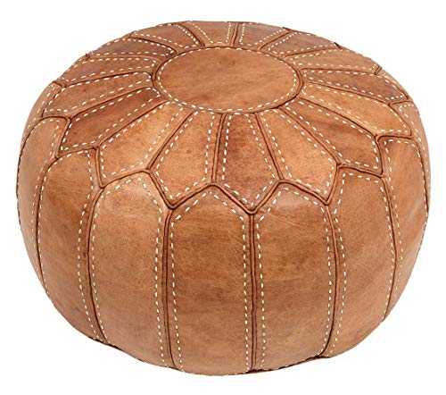 Pouf marocchino poggiapiedi ottomano in vero cuoio, di prima qualità. Color cuoio naturale.