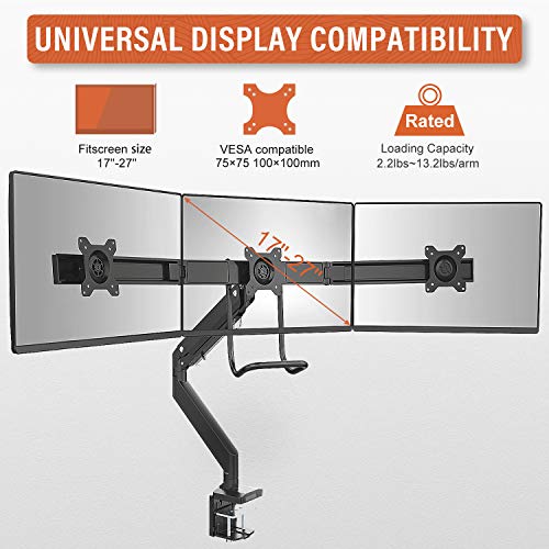 ✅ Compatibilità ampia: Ideale per monitor da 17″/43cm a 27″/69cm che pesano fino a 13.2libbre(6kg); Compatibile con i modelli di fori vesa di 75×75 – 100x100mm. i modelli di piastre vesa ruotabili supportano l’orientamento verticale o orizzontale del monitor.