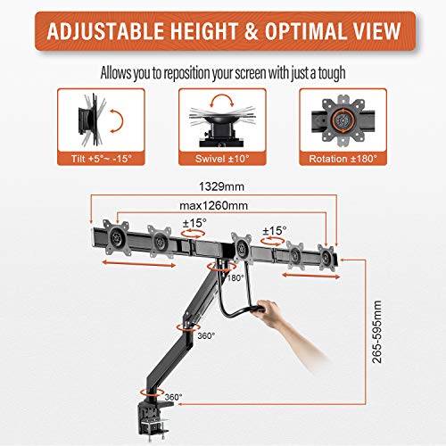 ✅ Flessibilità di Braccio: 5°/ 15° di inclinazione su e giù, -10° / + 10° di inclinazione a sinistra e destra, rotazione a ±180°. Regolare fino a 24.8″ di estensione di braccio e 23.4″ di altezza.