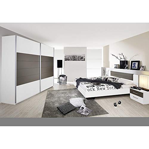 Contenuto della confezione: set per camera da letto composto da un letto e due comodini e armadietto con ante scorrevoli – colore bianco alpino con ripiani “grigio lava”. Materiale in legno. Dimensioni superficie di appoggio: circa 160 x 200 cm – senza rete a doghe e materasso – Dimensioni dell’armadio: 226 x 210 x 62 cm – Stato di consegna smontato – Montaggio semplice – senza materasso – senza rete a doghe