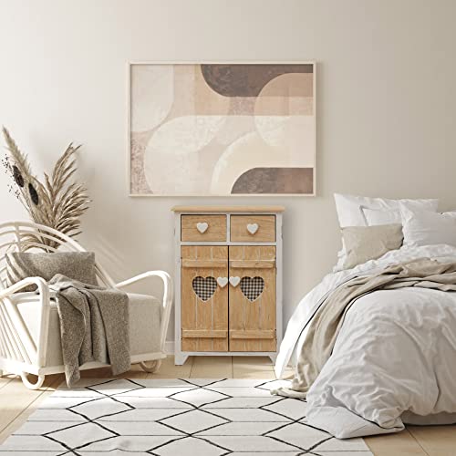 STILE SHABBY ROMANTICO E DELICATO: Il mobile multiuso è un ottimo esempio di stile shabby chic. Il colore delicato e leggermente decapato conferisce all’armadietto uno aspetto vissuto e anticato, mentre le finestrelle e i pomelli a cuore sono un dettaglio shabby e romantico