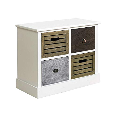 SPECIFICHE: Misure: H 49 cm x L 55 cm x P 26 cm – Misure cassetti (4): H 17,5 cm x L 22 cm – Colore: Bianco, Grigio, Beige, Marrone – Cod. RE4162