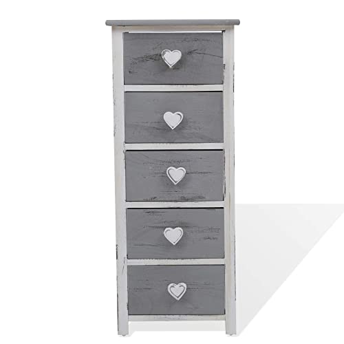 STILE SHABBY E DETTAGLI ROMANTICI: La cassettiera presenta una palette cromatica fine e dalle tinte decapate, un elemento caratteristico dello stile shabby chic. I pomelli a forma di cuore sono un ulteriore dettaglio romantico e donano grande eleganza e fascino al mobile