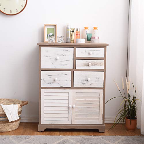 STILE RETRO CON FINITURE SHABBY: il mobiletto si caratterizza per uno stile retro e shabby. Il mix di ante e cassetti e la finitura decapata rende il mobiletto un tipico ideale per una camera da letto vintage o un soggiorno retro. Puoi sfruttarlo anche per completare l’arredamento shabby del tuo soggiorno