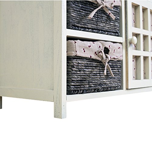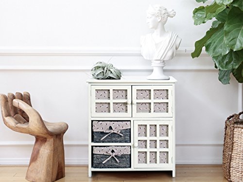 STILE SHABBY ED ELEGANZA COUNTRY: Il mobile multiuso Rebecca richiama i tipici elementi dello stile shabby. La struttura è dipinta di beige con finitura leggermente decapata e anticata. I cassetti in vimini sono foderati in tessuto. Perfetto come mobile per arredamento shabby o da abbinare ad una casa arredata in stile country o rustico