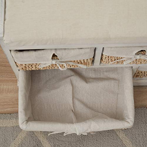 COMODO CUSCINO IMBOTTITO: La panchina Rebecca è fornita di un cuscino imbottito per una comoda e pratica seduta. E’ rivestito in morbido tessuto naturale e non è fissata alla base della panca per consentirti di rimuovere il cuscino facilmente ed utilizzare il ripiano della panca come mensola d’appoggio