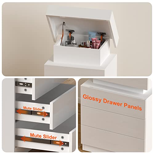 Pratico comò: il comodino moderno è dotato di prese elettriche e strisce LED intercambiabili, con 16 colori e 4 effetti luminosi, come stroboscopico e dissolvenza, il colore del display può essere cambiato tramite telecomando