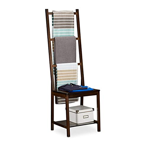 Sedia con portasciugamani da terra: con 3 staffe per gli asciugamani e ripiani per cosmetici, accappatoi e accessori da bagno