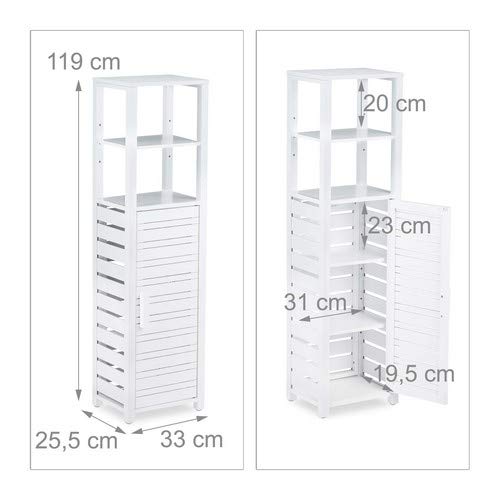 Dati tecnici: scaffale da bagno con 6 ripiani – HxLxP: 119 x 33 x 25,5 cm ca. – Anta con chiusura magnetica