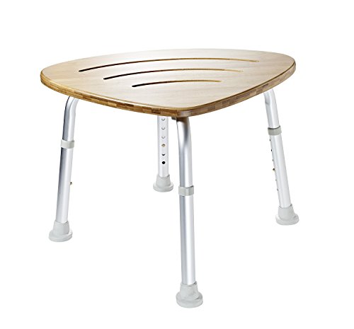 Sgabello da bagno con seduta in bambù, altezza regolabile.