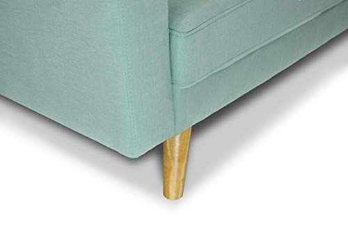 Colore: Verde Tiffany; Rivestimento: Tessuto vellutato; Piedi: in legno.