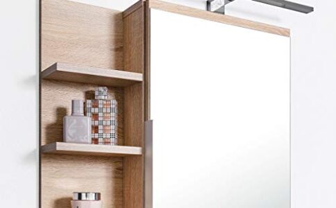 DOMTECH Armadietto da bagno con specchio, con mensole e illuminazione a LED, in rovere Sonoma, L