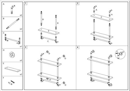Dimensioni complessive: lunghezza 60 cm x altezza 41,73 cm x profondità 7,221 cm. Tavola di legno: lunghezza 60 cm x profondità 7,87 cm x spessore 0,78 cm. Spazio tra ogni strato 30 cm.