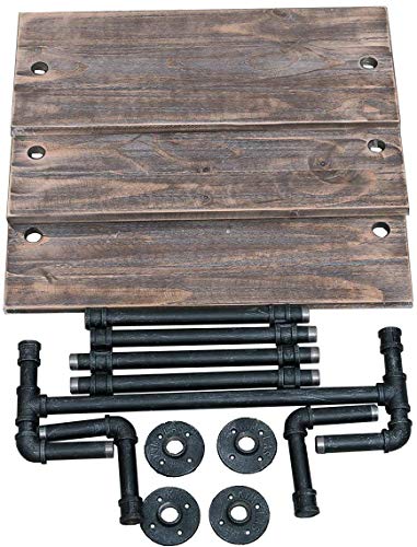 Stile retrò: tubi di ferro e composizione in vero legno rigenerato in stile vintage. Conservazione e decorazioni.Può essere utilizzato anche all’aperto.